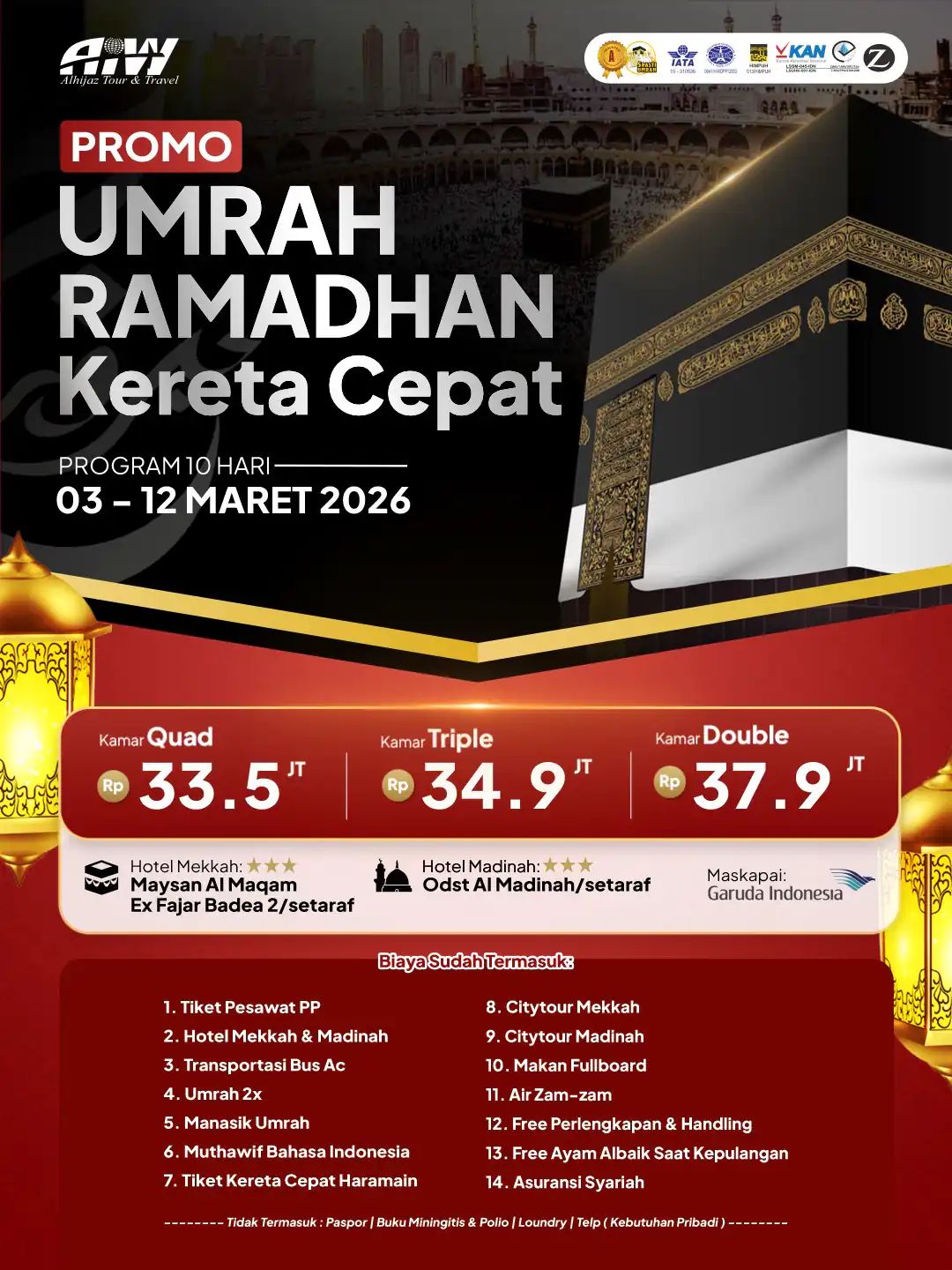 Wujudkan ibadah umroh di bulan penuh berkah bersama Travel Al Hijaz – travel umroh resmi Kemenag, berpengalaman dan terpercaya.