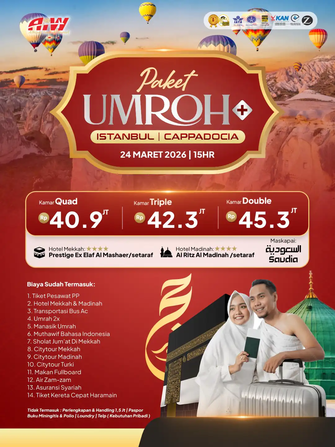 Paket Umroh Promo 2026 dengan Biaya Umroh Murah dengan pilihan paket 9-17 hari pesawat Landing Madinah dan Jeddah, Hotel *5
